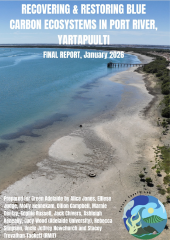 The University also attempted a Zostera restoration trial, with two transplant cohorts in September 2024 and March 2025, however the trials were confounded by the environmental stressors mentioned above. These were a marine heatwave from September 2024 to May 2025, that coincided with a harmful algal bloom (dominated by Karenia dinoflagellate species), which affected the Port River study area in mid-2025.