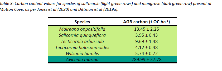 “Above-ground organic carbon stocks increased substantially from 2018 to 2024, driven by rapid mangrove expansion and the associated biomass increase compared to saltmarsh-dominated systems. Site-wide, the … system contained an estimated 2,853 t of above-ground carbon in late 2024, with mangroves contributing over 99 % of these stocks.”